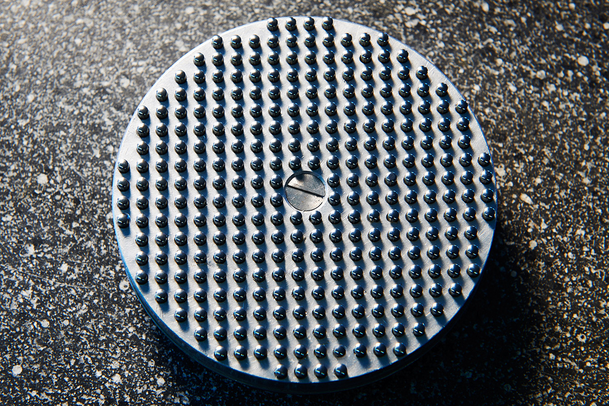 - Einbördeln von Hartmetall-Kugeln in Stahlfassungen